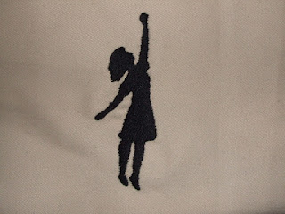 Ho realizzato il ricamo centrale stilizzando il corpo di una bambina in volo partendo da un semplice disegno a mano: